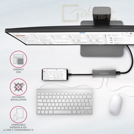 Az USB-C hub ideális kiegészítő olyan laptopokhoz, amelyek nem rendelkeznek USB-A porttal vagy videokimenettel. Így a meglévő USB perifériáit továbbra is használhatja új eszközök vásárlása nélkül. A Plug and Play és Hot Plug funkcióknak köszönhetően a hub csatlakoztatása egyszerű, nem igényel bonyolult telepítést, és a perifériák csatlakoztatása és leválasztása a számítógép működése közben is lehetséges. A hub mobiltelefonhoz is csatlakoztatható USB-C csatlakozóval, például pendrive, billentyűzet, egér, monitor, TV vagy projektor kapcsolásához.