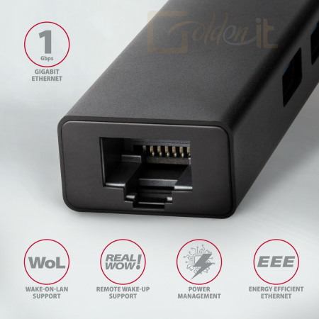 Notebook kiegészitők AXAGON HMC-GL3A SuperSpeed USB-C hub + Gigabit LAN Black - HMC-GL3A