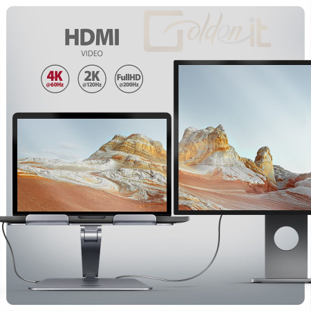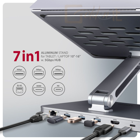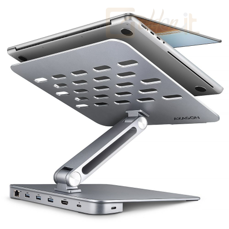 Notebook kiegészitők AXAGON HMC-STND USB-C 5Gbps Aluminium Stand & HUB 7in1 Silver - HMC-STND
