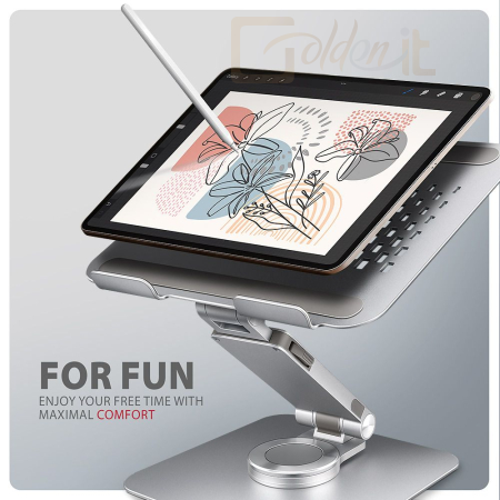 Az állvány könnyen összecsukható kompakt méretűre, így kényelmesen magával viheti bárhová. Elegáns kialakítása stílusosan egészíti ki íróasztalát. A párnán található szellőzőnyílások optimális hőelvezetést biztosítanak laptopja számára, növelve annak teljesítményét és tartósságát.