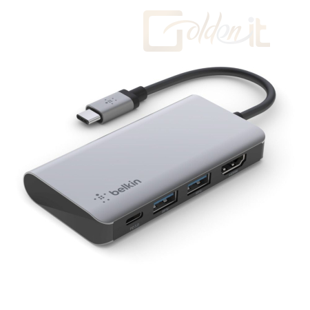 Notebook kiegészitők Belkin USB-C 4-in-1 Multiport Adapter Grey - AVC006BTSGY