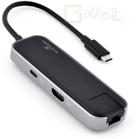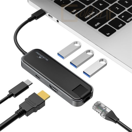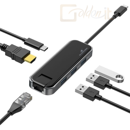 Notebook kiegészitők Bluestork HUB-OFFICE USB-C to 3xUSB2.0 + 1xUSB-C + 1xHDMI + 1xRJ45 Grey - HUB-OFFICE