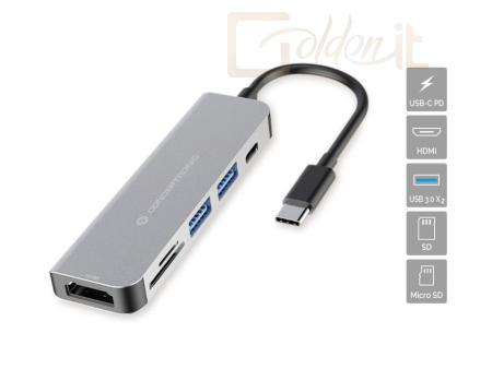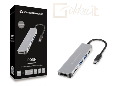 Notebook kiegészitők Conceptronic DONN02G 6-in-1 USB 3.2 Gen 1 Docking Station Grey - DONN02G