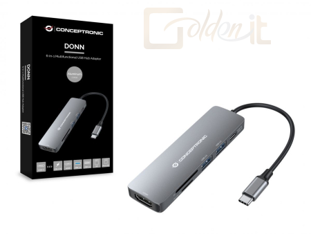 Notebook kiegészitők Conceptronic DONN11G 6in1 USB3.2 Gen 1 Docking Station Grey - DONN11G
