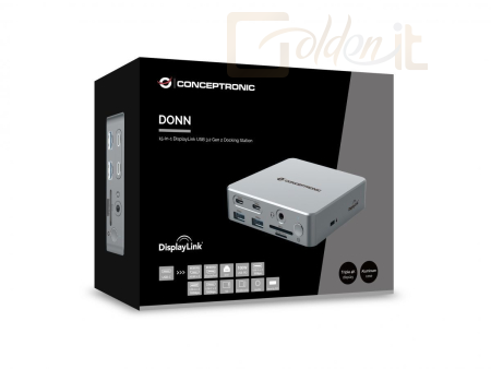 Notebook kiegészitők Conceptronic DONN25G 15-in-1 DisplayLink Docking Station - DONN25G