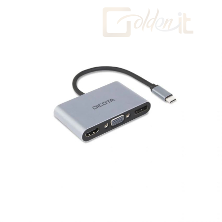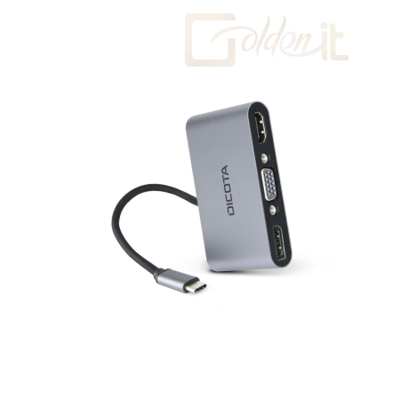 Bővítse számítógépének USB-csatlakozását a beépített USB-C csatlakozóval. A mini dokkolóállomás három grafikus kimenettel rendelkezik: 1x HDMI 4K, 1x Display Port 4K és 1x VGA (1080p). Az állomás emellett akár 100 W-os USB-C Power Delivery és USB-A 3.0 portokat is kínál. Könnyű, kompakt és tartós alumínium házzal rendelkezik. Az egység kompatibilis a Mac, a Windows és más USB-C támogatott eszközökkel. A plug and play specifikációnak köszönhetően nincs szükség további eszközkonfigurációra.