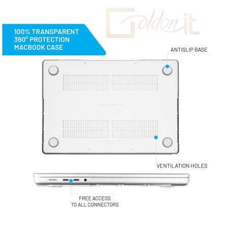 A szinte láthatatlan Pure borítót pontosan az Apple MacBook védelmére fejlesztették ki. A borítás két különálló részből áll, amelyek megvédik a készülék tetejét és alját a karcolásoktól, kisebb esésektől vagy egyéb sérülésektől. Teljesen átlátszó és puha tapintású polikarbonátból készül, amely vékony kialakításával nem változtatja meg a készülék méretét, és hagyja, hogy maga a MacBook dizájnja kiemelkedjen. A fedél tökéletesen illeszkedik, és szabad hozzáférést biztosít az összes csatlakozóhoz. A fedél alsó, szellőzőnyílásokkal ellátott része nem akadályozza a laptop hűtését, és a csúszásmentes párnáknak köszönhetően tökéletesen tart, ha az asztalon dolgozol.