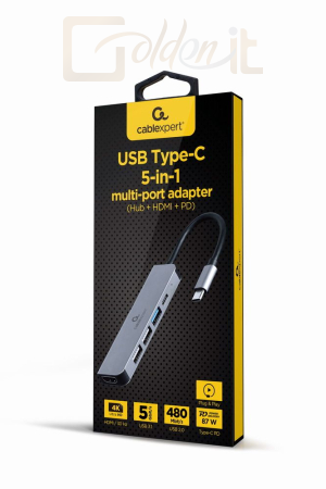 Notebook kiegészitők Gembird A-CM-COMBO5-03 USB Type-C 5-in-1 Multi-Port Adapter Space Grey - A-CM-COMBO5-03