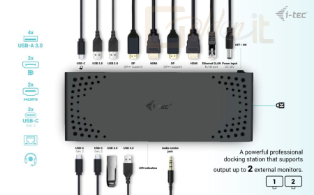 Notebook kiegészitők I-TEC USB 3.0/USB-C/Thunderbolt 3 Dual Display Docking Station Gen2+Power Delivery 100W Black - CADUA4KDOCKPDL2