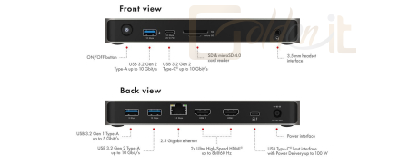 6xUSB, 90x190x25mm, Dokkoló, HDMI, LAN, Audio, SD CardReader