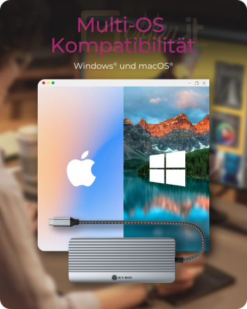 Notebook kiegészitők Raidsonic IcyBox IB-DK4040A-CPD USB-C Docking Station Grey - IB-DK4040A-CPD