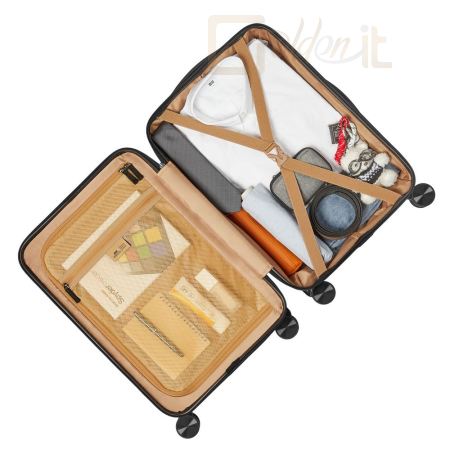 - Egy belső cipzáras zseb levehető kulcspánttal. - Tágas hátsó rekesz keresztpántokkal, tökéletes ruhák és személyes tárgyak csomagolására.