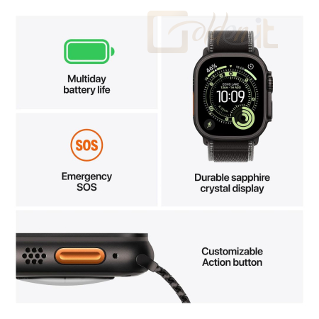 Az Apple Watch Ultra 3 a multitasking nagymestere egy sportóra és egy okosóra szuperképességeivel. Az üzleti megbeszélésről egyből mehetsz vele bokszedzésre vagy búvárkodni, majd tovább egy elegáns vacsorára – gördülékenyen alkalmazkodik hozzád. Hívásokat fogadhatsz, válaszolhatsz az üzeneteidre, zenét streamelhetsz, és fizetésre is használhatod. Mindeközben rögzíti az egészségeddel kapcsolatos adatokat, és szükség esetén hasznos biztonsági funkciók is kéznél vannak. Nem véletlenül hívják Ultrának.