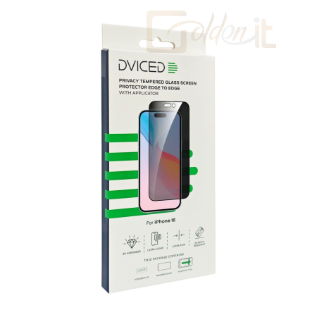 Okostelefon kiegészítő Dviced Dviced Privacy tempered glass screen protector edge to edge for iPhone 16 with applicator - DV520020