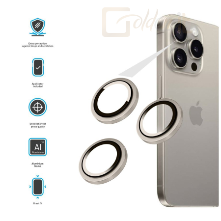 Okostelefon kiegészítő FIXED Camera Glass for Apple iPhone 15 Pro/15 Pro Max Natural Titanium - FIXGC2-1202-GD