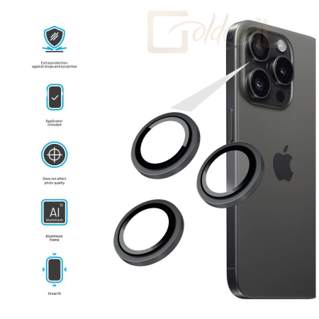 Okostelefon kiegészítő FIXED edzett üveg kamera lencsevédő Apple iPhone 16 Pro/16 Pro Max telefonokhoz, fekete - FIXGC2-1402-BK