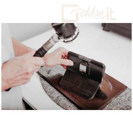 A tok kiváló minőségű és tartós szintetikus bőrből készült, lakkozott felülettel, ami megkülönböztethetetlen a valódi bőrtől. A kézi gyártás során is alkalmazzák a hőre lágyuló formázást, aminek köszönhetően szilárd megerősített formát kap a telefon maximális biztonsága érdekében. Az egyszerű eltávolítást az alján teljesen zárt kinyitó rendszer biztosítja. A tok tömör fém klipsszel van felszerelve, és kifejezetten övön viselhető. Zárását két pár kiváló minőségű neodímium mágnes biztosítja.
