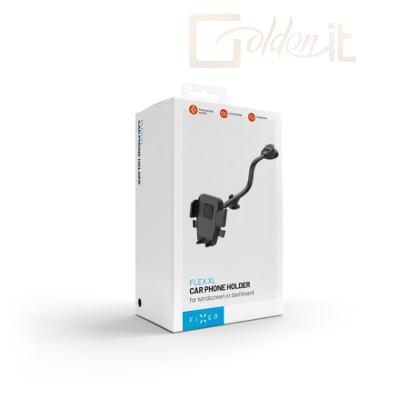 A FIXED Iconiq Flex XL univerzális autós tartó a Push and grip gyorskioldó rendszerrel biztonságos és egyszerű, egy kézzel is kezelhető telefonrögzítést kínál. A teljesen Csehországban kifejlesztett tartó csendes és sima mechanizmust kínál minimalista funkcionális dizájnnal kombinálva. Csak enyhén nyomja a telefont a tartó felületére, és az oldalsó rögzítő automatikusan alkalmazkodik a telefon méretéhez, legfeljebb 8,3 cm szélességig. Egyetlen nyomással ugyanilyen gyorsan kioldja a telefont. A rögzített telefon stabilitását alulról fazettált támaszok biztosítják, amelyek nem akadályozzák a töltőcsatlakozóhoz való hozzáférést. A tartó teste edzett műanyag és védő szilikon elemek kombinációja, amelyek egyetlen egységet alkotnak. A tartó hajlékony karja a tapadókorong segítségével a szélvédőre vagy a műszerfalra helyezhető. A tapadókorong ellenáll minden ütésnek, és többszöri rögzítés után sem veszíti el erős tapadását. A 29 cm hosszú kar biztosítja az ideális betekintési szöget, amely tetszés szerint hajlítható vagy egy kiegészítő fogantyúval erős 3M szalaggal rögzíthető. A kábelrendezést a tartó hátoldalán található levehető fogantyúk könnyítik meg. A FIXED Iconiq Flex XL tartóval gondtalanul élvezhet minden utazást.