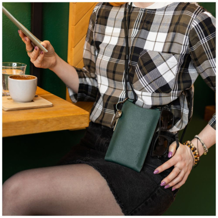 Az elegáns FIXED Verona táska praktikus kiegészítő a telefon és más alapvető dolgok számára. A főzseb a legtöbb, legfeljebb 7" átmérőjű mobiltelefon számára készült, így elegendő helyet biztosít még a borítással ellátott telefonok számára is. A kisebb zseb ideális kártyák, dokumentumok vagy bankjegyek számára, amely viseléskor diszkréten elrejthető a táska másik oldalán. Minden egyes darab kézzel készül Prostejov-i műhelyünkben kiváló minőségű saffiano bőrből, amelyet az átlós sraffozás jellemez. Ez teszi az anyagot ellenállóvá a karcolásokkal és egyéb sérülésekkel szemben. A táska rögzített zsinórral van ellátva a variálható viseléshez a táska színárnyalata bármilyen öltözéket kiegészít, és azonnal nélkülözhetetlen társsá válik, akár a városba, akár kirándulni megy.