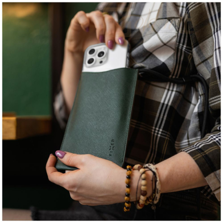 Az elegáns FIXED Verona táska praktikus kiegészítő a telefon és más alapvető dolgok számára. A főzseb a legtöbb, legfeljebb 7" átmérőjű mobiltelefon számára készült, így elegendő helyet biztosít még a borítással ellátott telefonok számára is. A kisebb zseb ideális kártyák, dokumentumok vagy bankjegyek számára, amely viseléskor diszkréten elrejthető a táska másik oldalán. Minden egyes darab kézzel készül Prostejov-i műhelyünkben kiváló minőségű saffiano bőrből, amelyet az átlós sraffozás jellemez. Ez teszi az anyagot ellenállóvá a karcolásokkal és egyéb sérülésekkel szemben. A táska rögzített zsinórral van ellátva a variálható viseléshez a táska színárnyalata bármilyen öltözéket kiegészít, és azonnal nélkülözhetetlen társsá válik, akár a városba, akár kirándulni megy.