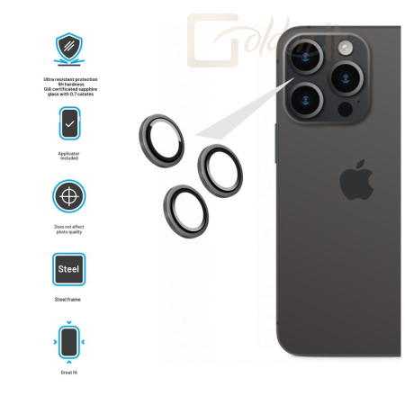 Okostelefon kiegészítő FIXED Zafír kamera lencsevédő Apple iPhone 15 Pro/15 Pro Max készülékhez, ezüst - FIXGCS-1202-SL