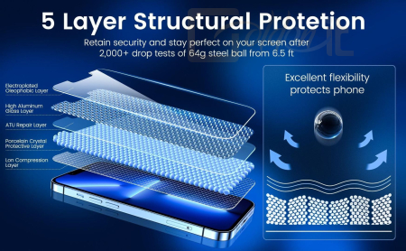 Üvegfólia - Apple iPhone 14 Pro Max üvegfólia, 2.5D ívelés, 9H keménységgel, 0,3 mm üvegvastagsággal, a csomag részét alkotja: szerelőkeret, törlőkendő, alkoholos kendő, poreltávolító matrica és telepítőfólia.