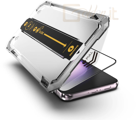 Üvegfólia - rendeltetése SAMSUNG Galaxy S24+, 2.5D ívelés, 9H keménység, fényes és oleofób anti-ujjlenyomat szerkezet, 0,3 mm vastagság, a csomag tartalma szerelőkeret, törlőkendő, spatula és poreltávolító matrica