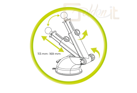 Állítható kar: 113 mm és 169 mm között nyúlik ki az optimális pozícionálás érdekében.