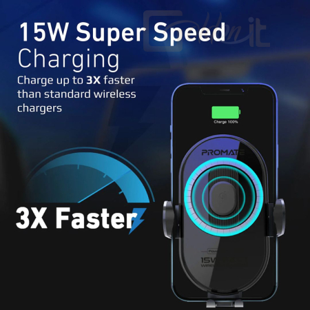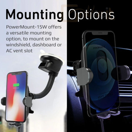 Okostelefon kiegészítő Promate PowerMount-15W 15W Smart Sensor Car Wireless Charger Black - POWERMOUNT-15W