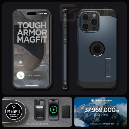 Okostelefon kiegészítő Spigen iPhone 15 Pro Max Case Tough Armor MagSafe (MagFit) Metal Slate - ACS06595