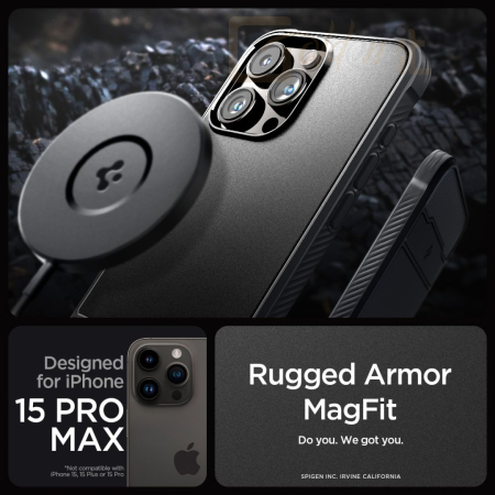 Okostelefon kiegészítő Spigen Rugged Armor MagSafe, matte black - iPhone 15 Pro Max - ACS06561