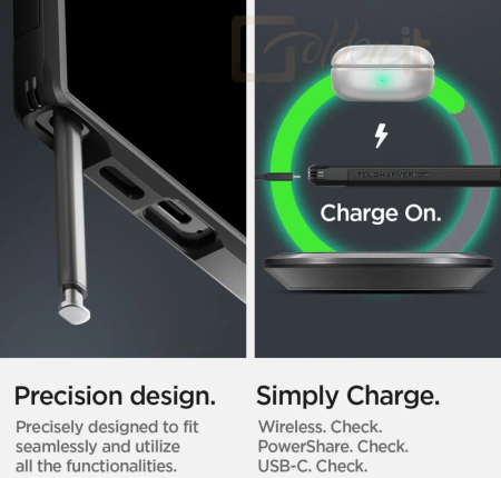 A tok tökéletesen illeszkedik és nem korlátozza a vezeték nélküli töltést.A tok enyhén megemelt formája a kamera és a képernyő körül védi azt a karcolásoktól, a telefont éppen csak a sík felület fölé emelve. Gombfedéllel és portkivágásokkal rendelkezik.