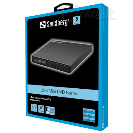 A Sandberg USB Mini DVD Burner (USB mini DVD-író) CD- és DVD-lemezek írását és olvasását teszi lehetővé. Ez a meghajtó tökéletes kiegészítő egy CD-olvasóval vagy DVD-íróval nem rendelkező számítógép mellé. Mivel ezt az eszközt a számítógép USB portja látja el árammal, akár menet közben is használhatja, anélkül, hogy be kellene dugnia. Remekül használható netbookhoz kapcsolva, DVD lejátszóként is. Nincs szükség külön szoftverek telepítésére, a meghajtó azonnal használható.