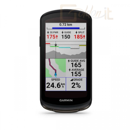 Automatikusan megjelenik a hátralevő emelkedés és annak mértéke ha pályát vagy tervet követsz. Ez segít megtervezni az erőbeosztásod, mivel láthatod, mennyit kell még szenvedned. Ezen felül az emelkedő leküzdését el is mentheted, hogy utólag a készüléken vagy a Garmin Connectben elemezhesd.