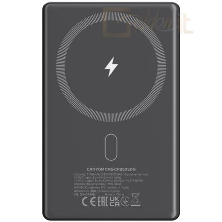Powerbank vésztöltők Canyon CNS-CPB505DG 5000mAh PowerBank Dark Grey - CNS-CPB505DG