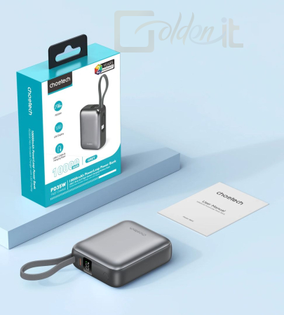 Powerbank vésztöltők Choetech B832 Mini 35W 10000mAh PowerBank with USB-C Cable Grey - 01.01.04.XX-B832-GY