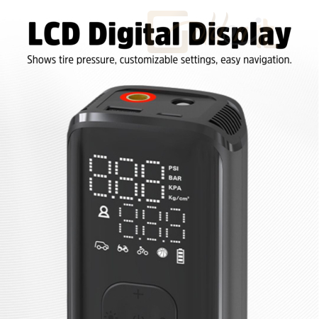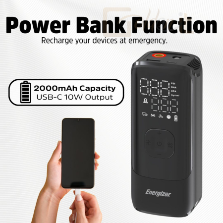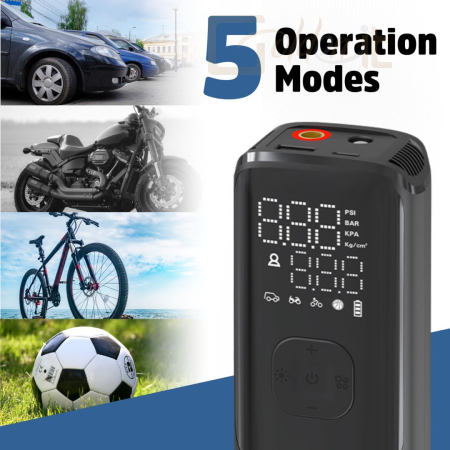 - Kettős funkció: Gumiabroncs felfújás + Power Bank.
