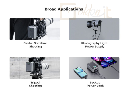- Többportos kimenetek (USB-C, USB-A, D-Tap, DC) a maximális rugalmasságért