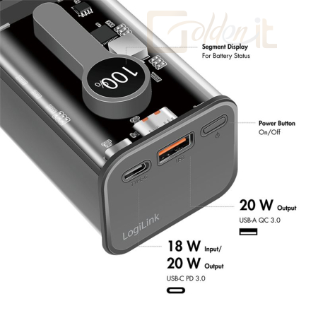A LogiLink 10 000-es mobil power bank (kiegészítő akkumulátor) különösen alkalmas a nagy energiafogyasztású mobiltelefonokhoz és táblagépekhez, és lehetővé teszi a végkészülékek töltését útközben, valamint megakadályozza, hogy a végkészülékek a legmegfelelőbb pillanatokban leálljanak. A különlegesség ebben az esetben: Az LCD töltöttségi állapotjelző, így mindig szem előtt van a powerbank akkumulátora.