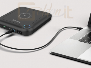 A Sandberg All-in-1 Laptop Powerbank 24000 az Ön univerzális energiaforrása útközben valamennyi mobil eszközhöz, még a laptopjához vagy Macbookjához is. Nagy kapacitású, 24.000 mAh akkumulátora eléggé erős az okostelefon többszöri feltöltéséhez, vagy további több órás munkához a laptopján. A powerbank a tartozék AC adapterrel vagy bármely USB-C feltöltő segítségével néhány óra alatt egyszerűen feltölthető. A DC kimenet és a csomagban lévő 12 különböző adapter, valamint egy Quickcharge USB-port és két USB-C port révén többféle eszköz tölthető fel maximális sebességgel. Plusz szolgáltatásként a powerbankhoz még egy beépített vezeték nélküli gyorstöltő is tartozik. A powerbankot könnyen magával viheti a táskájában, és csupán 0,5 kilogrammot nyom.