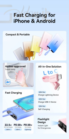 A Vention FHZY0 Sárga power bank kapacitása 10 000 mAh és 22,5 W-os kimeneti teljesítményt támogat. EU-s csatlakozóval rendelkezik, műanyagból készült, és sárga színben kapható. A készülék USB-C, Micro USB és USB-A csatlakozókkal rendelkezik, kimeneti feszültségei 5 V, 9 V, 12 V és 20 V. Univerzálisan kompatibilis és külső akkumulátorként szolgál.