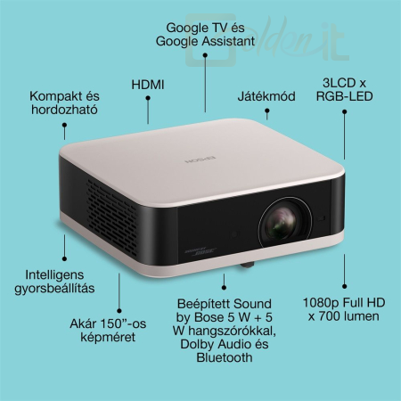 Full HD, 700 lumen, akár 3-szor nagyobb fényerejű képekkel* Az Epson 3LCD x RGB-LED lenyűgöző képtechnológiájával a képek élénkebb, élettel telibb látványt kínálnak.