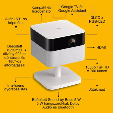 3LCD, 1920x1080, 700ANSI Lumen, 500000:1, 190x190x249mm, 4,7kg, Bluetooth, WiFi