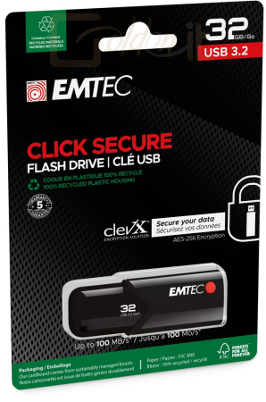 USB Ram Drive Emtec 32GB B120 Click Secure USB3.2 Black - ECMMD32GB123