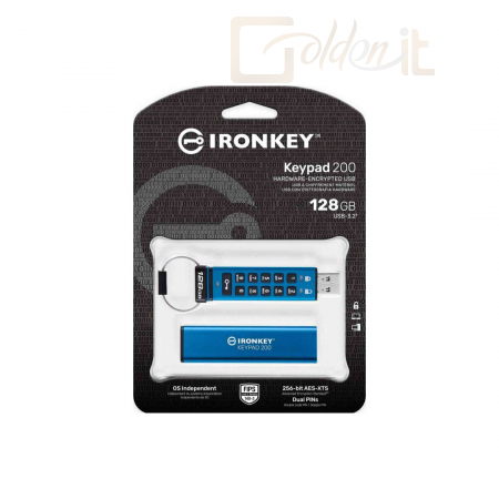 USB Ram Drive Kingston 128GB IronKey Keypad 200 USB3.2 Blue - IKKP200/128GB