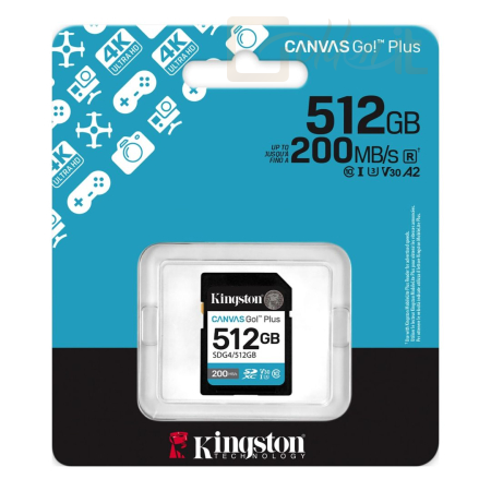USB Ram Drive Kingston 512GB Canvas Go Plus Gen4 Class 10 UHS-I U3 V30 - SDG4/512GB