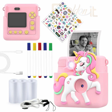 Ez a gyermekeknek készült fényképezőgép játékos szilikon tokokkal és kiegészítőkkel rendelkezik, így örömteli és fantáziadús eszköz a fiatal fotósok számára.