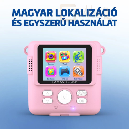 Örökítsd meg az összes hétköznapi és rendkívüli pillanatot a barátaiddal és a családdal – a LAMAX InstaKid1 révén te leszel minden buli fotósa. A gyerekek számára tervezett fényképezőgép azonnal kinyomtatja a fotókat, és ehhez csak egy tekercs hőpapírra van szükséged, toner vagy tinta nélkül. A nagy színes kijelzőn tökéletesen láthatod a teljes kompozíciót, ha pedig igazán eredeti szeretnél lenni és életre keltenéd a fotókat, használd a beépített szűrőket, effekteket és kereteket. Mindezt bátran kipróbálhatod egy szelfin is, amit az előlapon található tükör segítségével könnyedén elkészíthetsz. A kamera elején található világításnak köszönhetően még gyenge fényviszonyok között is nagyszerű fényképeket készíthetsz. Ha nem szeretnél nyomtatni, mentsd el a fotókat microSD-kártyára, csakúgy, mint a videókat is, amelyeket szintén rögzíthetsz a fényképezőgéppel. A megfelelő pillanatra való várakozást játékok teszik élvezetesebbé, összesen négy közül választhatsz. A kamera számos funkcióval rendelkezik, minden magyarul van, maga a készülék pedig rózsaszín vagy kék színben is elérhető.