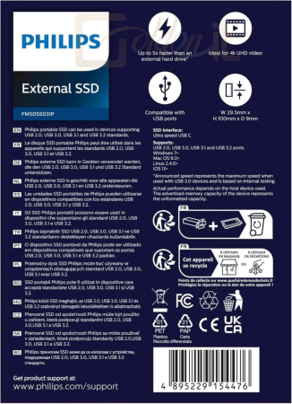 Winchester SSD (külső) Philips 500GB USB Type-C Black - FM50SS031P/00